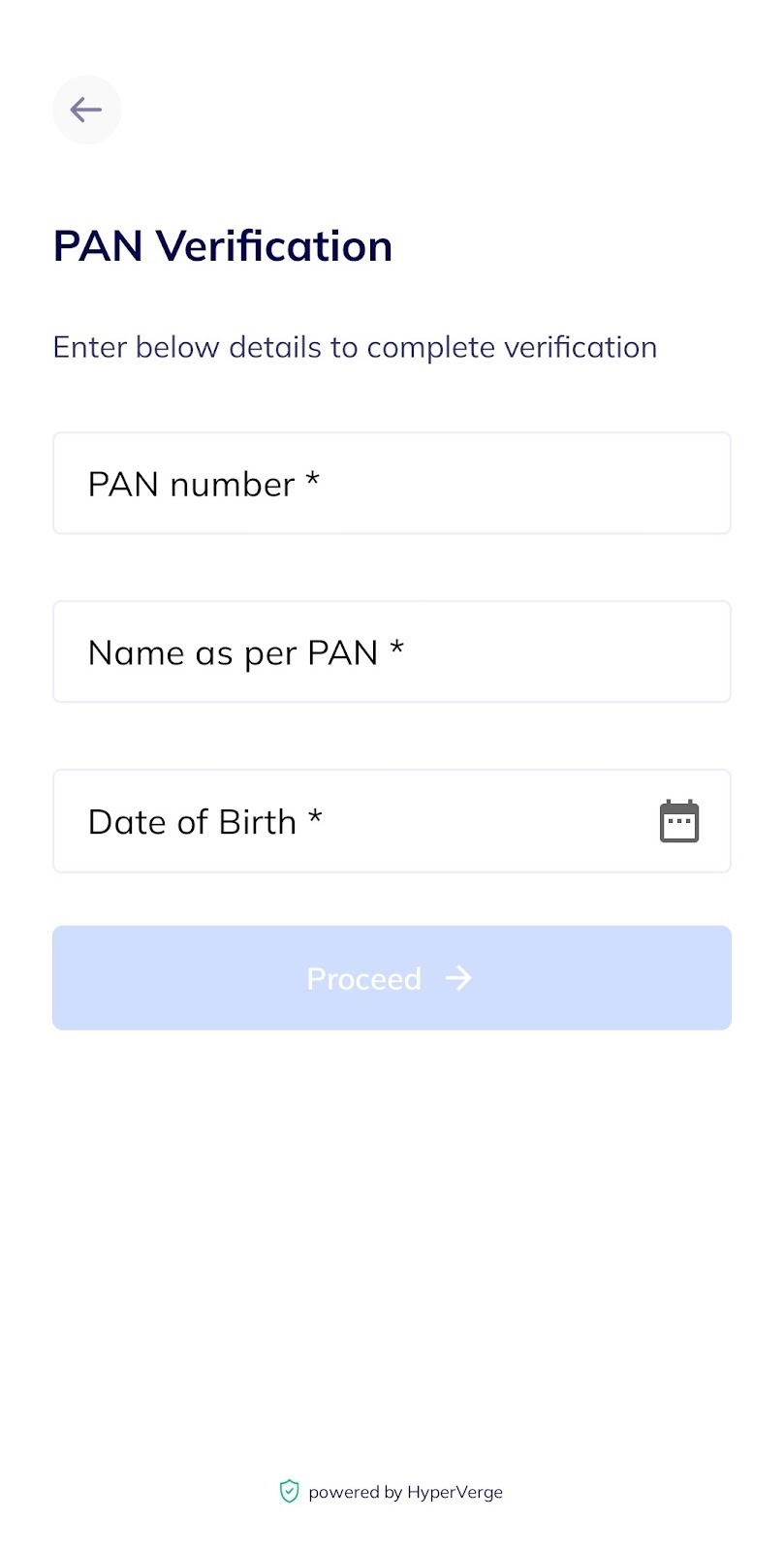 If you do not have a Digilocker account or are not comfortable with the Zero doc KYC process, you can complete your KYC using this option, which allows you to manually capture your documents and have them verified.