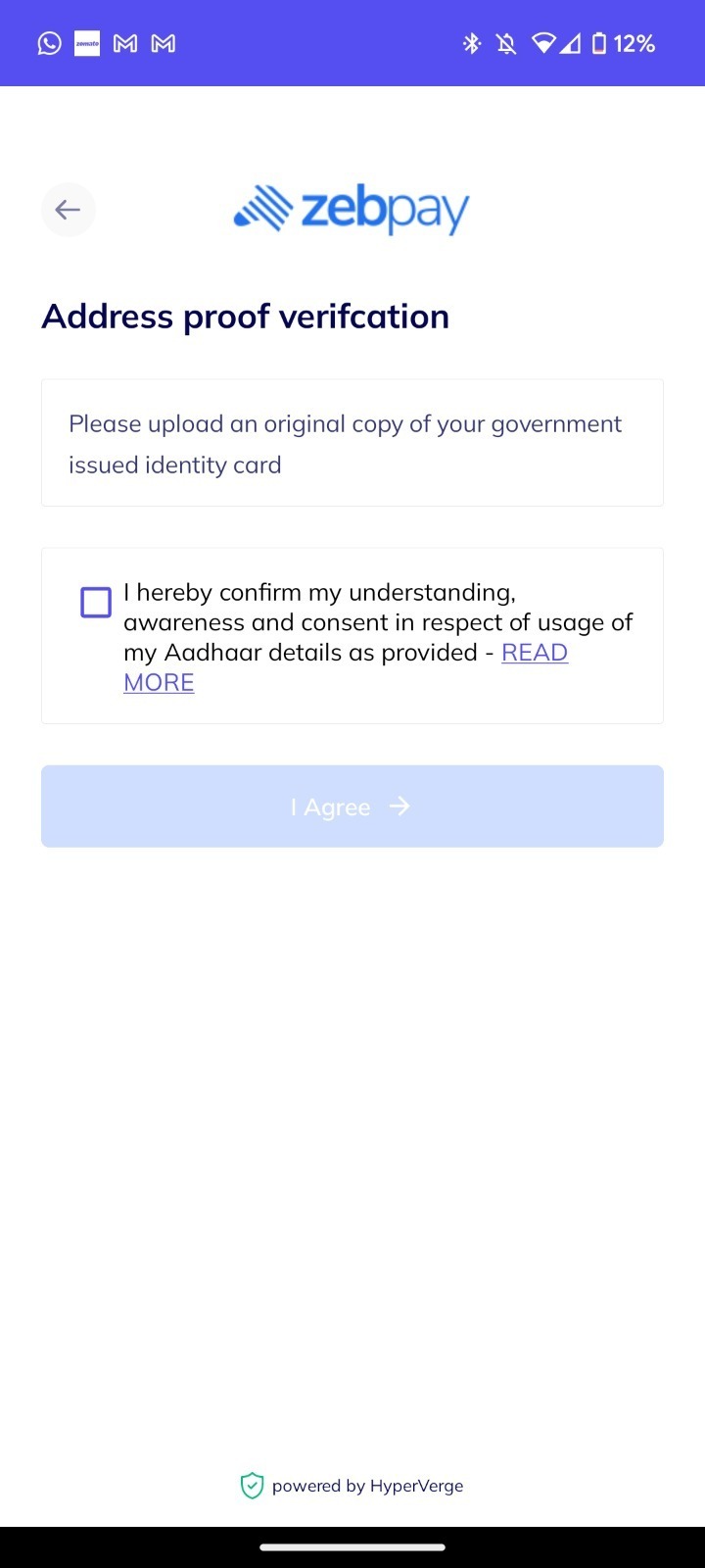 Post selecting the document from the list, you will be asked to share the consent to use your address document for verification with us.